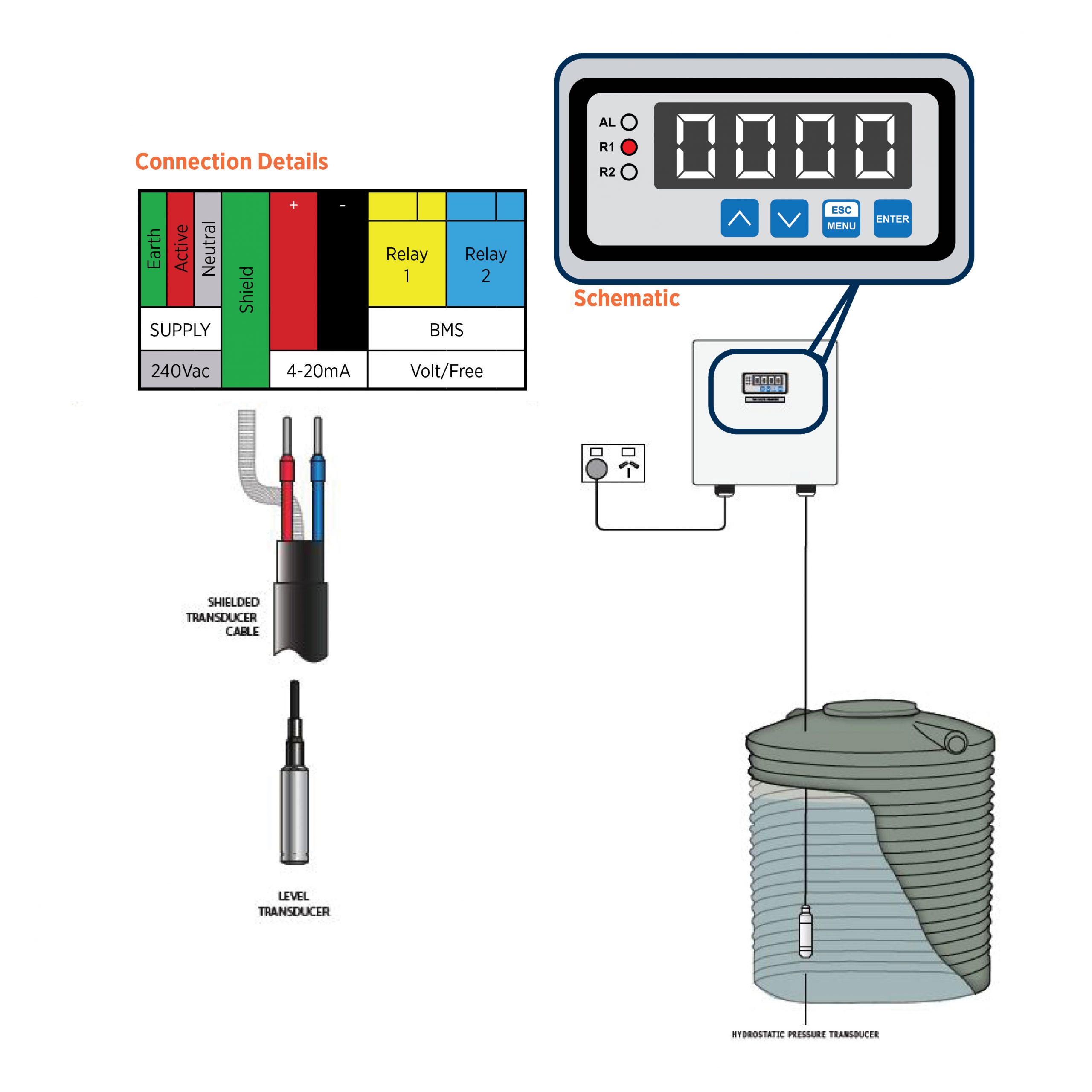 | MODEL | REEFE Digital Tank Level Indicator with hydrostatic pressure transducer |
