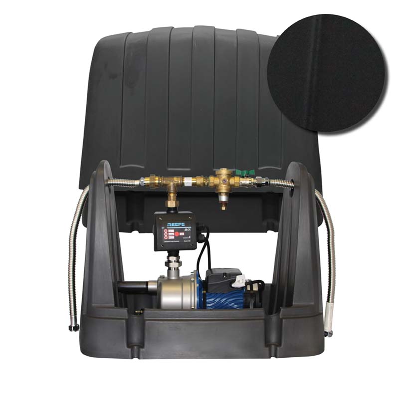 RM7000-3 Rainpro is the RM4000 RainPro “Easy Install” Unit with the added advantage of a pump cover. The Rain Mains device has no cables, no float, no solenoid, no electronic controls. Kit comes complete with cover and flexible hose. The RM7000-3 restricts mains supply while rain water is being pumped to help conserve our precious resource. This system is only suited to flooded suction and is best for supplying laundry and toilets, and small houses & cabins (1 bathroom). For suction lift and underground tanks, use submersible pump option RM5000-3. For whole house supply (with more than one bathroom) use RM1500-2. Pump covers available in a variety of colours to match most standard tank colours.