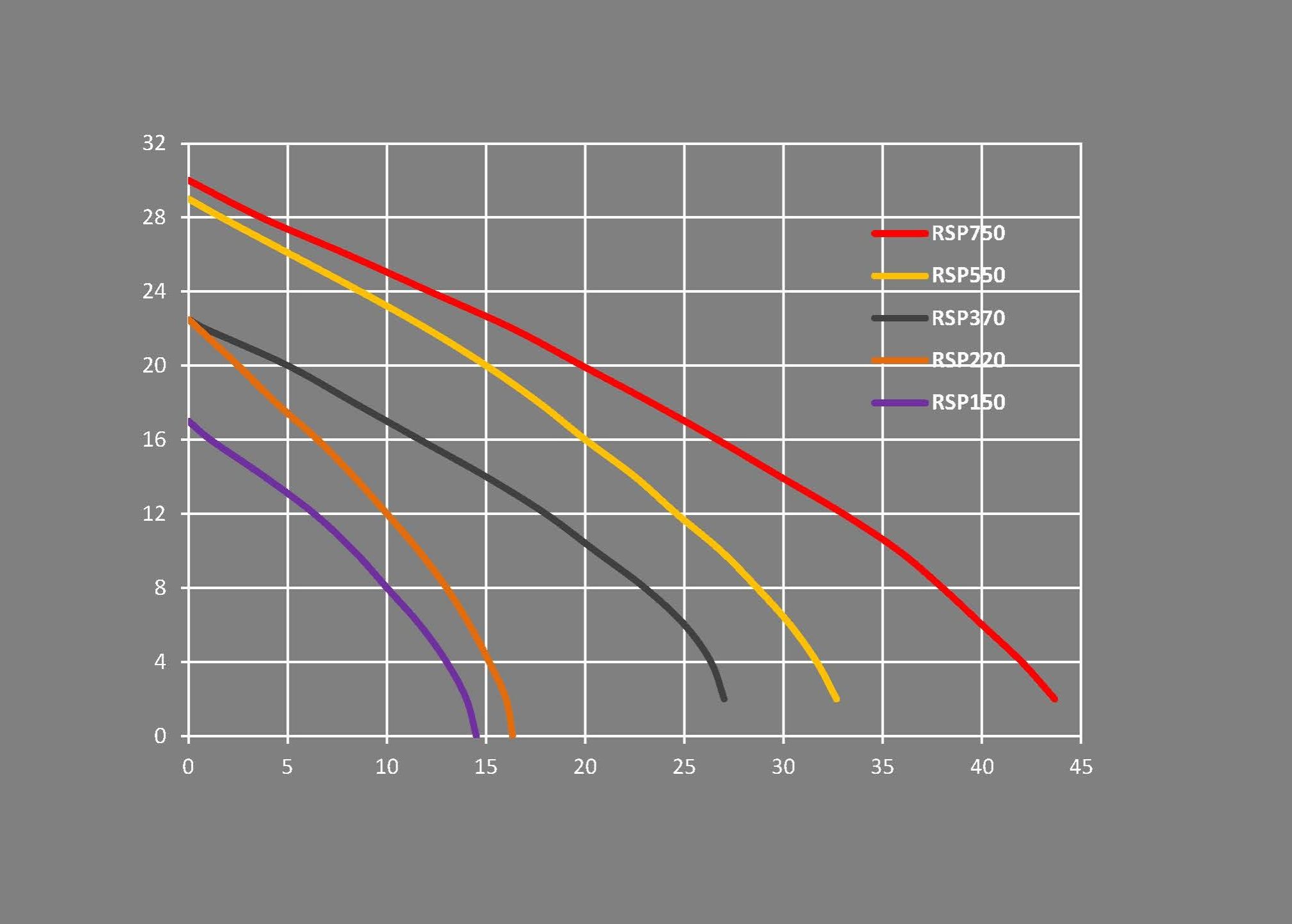 | MAXIMUM FLOW | 43.6 L/sec | MAXIMUM HEAD | 30m |